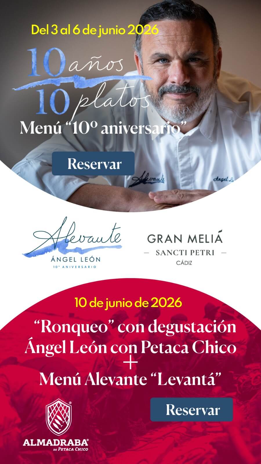 Alevante posee dos Estrellas Michelin y dos Soles Repsol. Liderado por Ángel León, conocido mundialmente por su compromiso con la conservación y gestión del océano a través de la investigación en nuevos ingredientes que reduzcan la presión pesquera y fomenten una pesca sostenible. Situado en el Hotel “Palacio de Sancti Petri Gran Meliá” (Chiclana de la Frontera, Cádiz), fundamenta su propuesta gastronómica en una cocina de productos kilómetro cero, frescos del día y especialidades del mar.